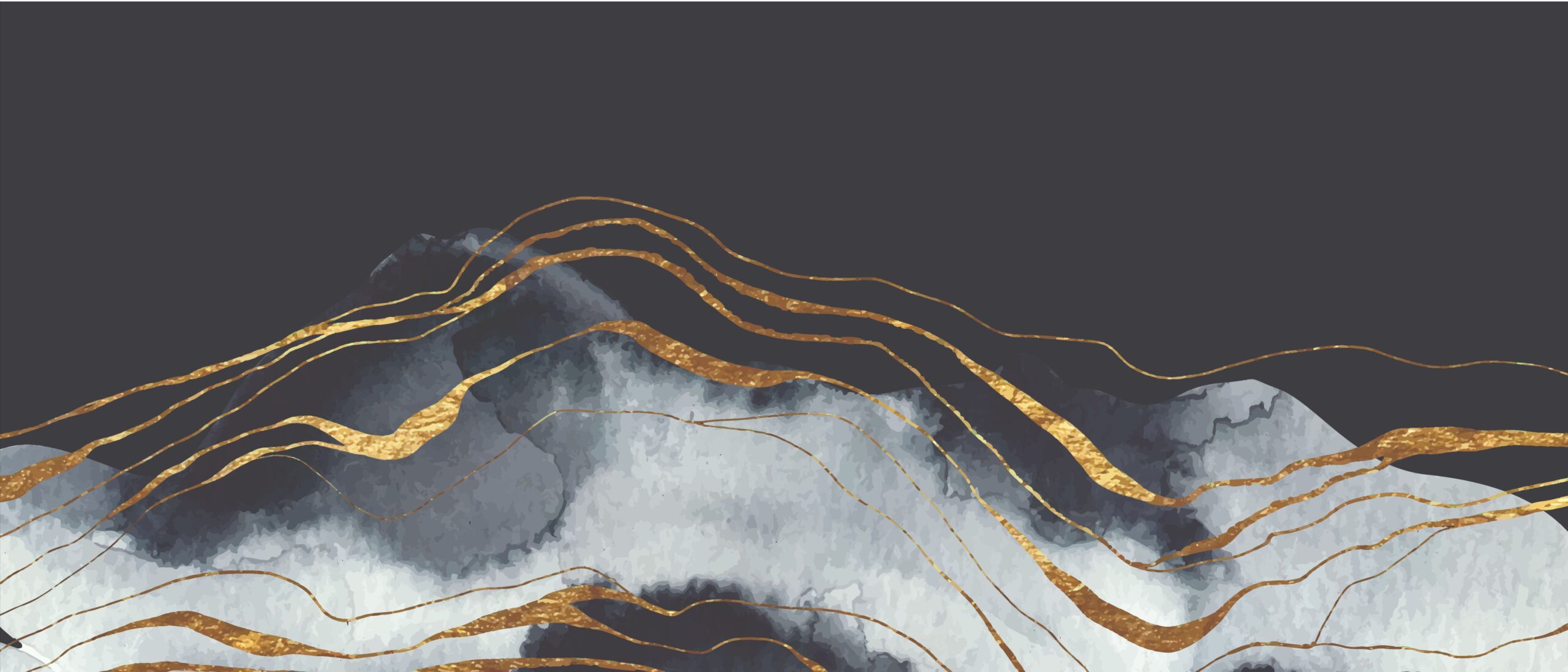 Dramatic waves of deep midnight tones flow with radiant golden veins, evoking power, elegance, and timeless luxury sophistication.